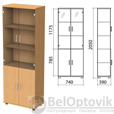 Шкаф закрытый со стеклом "Монолит", 740х390х2050 мм, цвет бук бавария (КОМПЛЕКТ)
