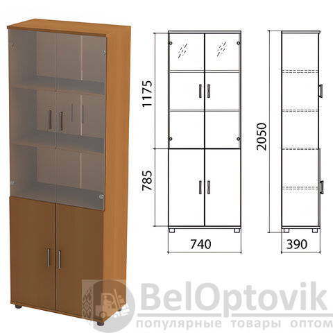 Шкаф закрытый со стеклом "Монолит", 740х390х2050 мм, цвет орех гварнери (КОМПЛЕКТ)