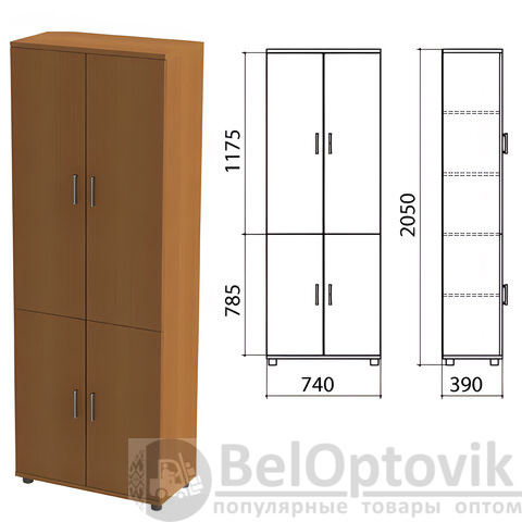 Шкаф предназначен для хранения документов и других предметов обихода. Полки стационарные. Регулируемые опоры позволяют компенсировать возможные неровности пола.