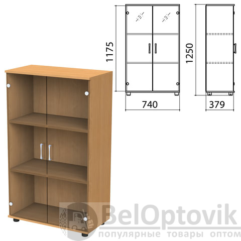 Шкаф закрытый со стеклом "Монолит", 740х390х1250 мм, цвет бук бавария (КОМПЛЕКТ)