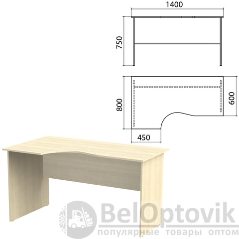 Стол письменный эргономичный "Канц", 1400х800х750 мм, левый, цвет дуб молочный (КОМПЛЕКТ)