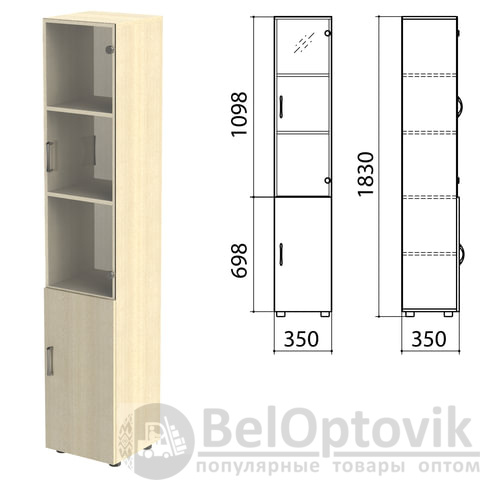 Шкаф закрытый со стеклом "Канц", 350х350х1830 мм, цвет дуб молочный (КОМПЛЕКТ)