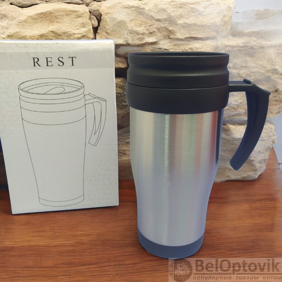 Купить Термокружка с ручкой Reestr 450мл., нержавеющая сталь на нашем сайте можно ОПТОМ от 10 шт. или меньше, если Вы покупаете у нас и другие товары (сборный заказ).