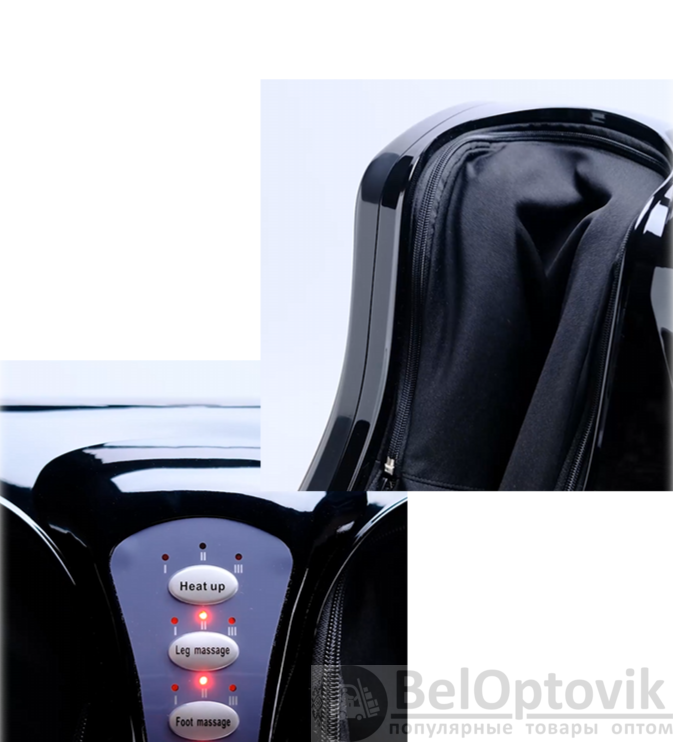 Массажер для ног VibeWell L-056 BLACK поможет Вам забыть об усталости, чувстве тяжести, болях и избавиться от неприятного дискомфорта после напряженного рабочего дня! Массажер сочетает в себе функции роликового, компрессионного массажа и функцию подогрева. В массажере имеются ролики и воздушные подушки, за счет которых при сжатии стопы усиливается эффект воздействия массажных роликов на биологически-активные точки стоп. Благодаря мягкому интенсивному сдавливанию снимается напряжение и улучшается циркуляция крови.