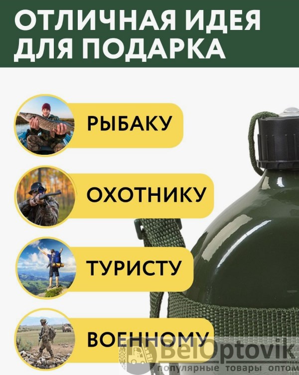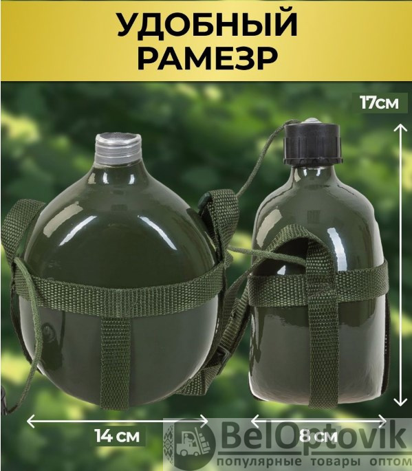 Купить армейскую алюминиевую фляжку 1л. на нашем сайте можно ОПТОМ от 20 шт. или не менее 5, если Вы покупаете у нас и другие товары (сборный заказ).
