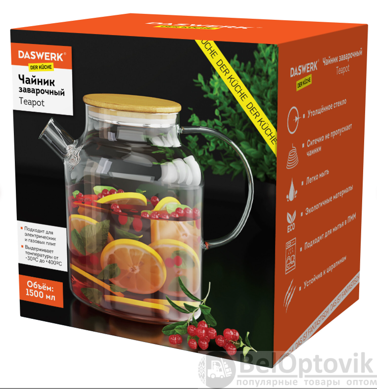 Почему купить Чайник заварочный 1500 мл., жаропрочное стекло, спиральное сито оптом выгодно у нас: