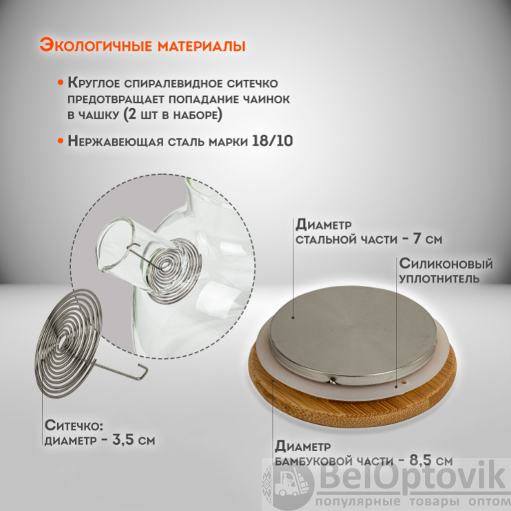 - Заварочный чайник изготовлен из утолщенного жаропрочного стекла.