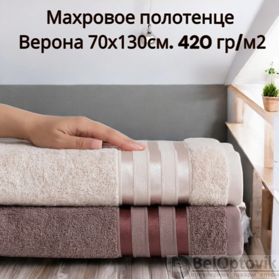 Купить Махровое полотенце Верона 70х130см. 420 гр/м2 на нашем сайте можно ОПТОМ от 400 шт. или не менее 200, если Вы покупаете у нас и другие товары (сборный заказ).