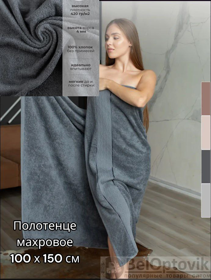 Купить Полотенце банное махровое 100х150см. / Идеально для сауны и пляжа на нашем сайте можно ОПТОМ от 400 шт. или не менее 200, если Вы покупаете у нас и другие товары (сборный заказ).