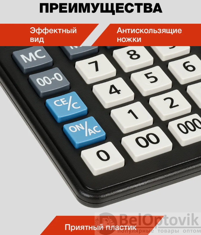 Эргономичной формы с удобными крупными клавишами и устойчивыми прорезиненными ножками, которые обеспечат комфорт и стабильность во время работы. Непрограммируемый калькулятор предоставит все необходимые функции для успешного выполнения самых разнообразных задач. Большой размер калькулятора (155*205*35 мм) позволяет работать с удобным 16-разрядным дисплеем, благодаря чему можно оперативно просматривать и анализировать результаты вычислений.