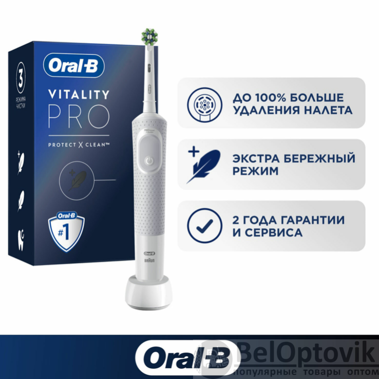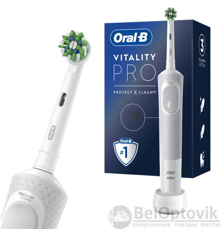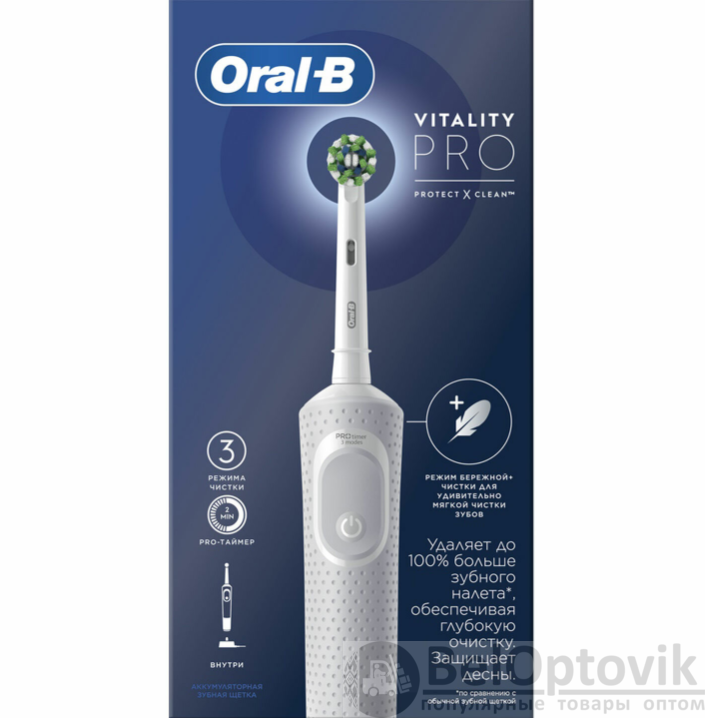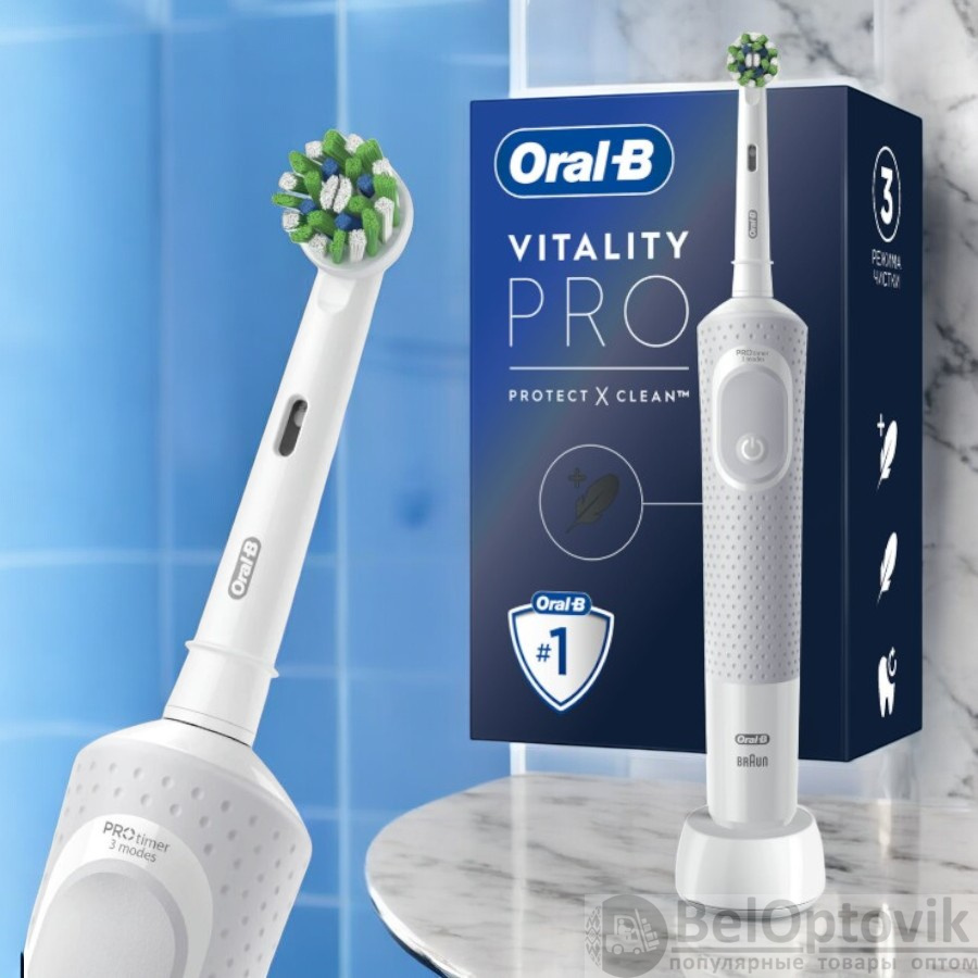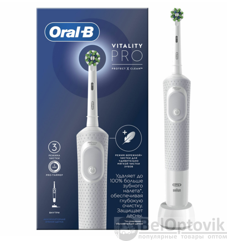 Купить Зубная щетка электрическая ORAL-B (Орал-би) Vitality Pro, 1 насадка, белая на нашем сайте можно ОПТОМ от 20 шт. или не менее 5, если Вы покупаете у нас и другие товары (сборный заказ).