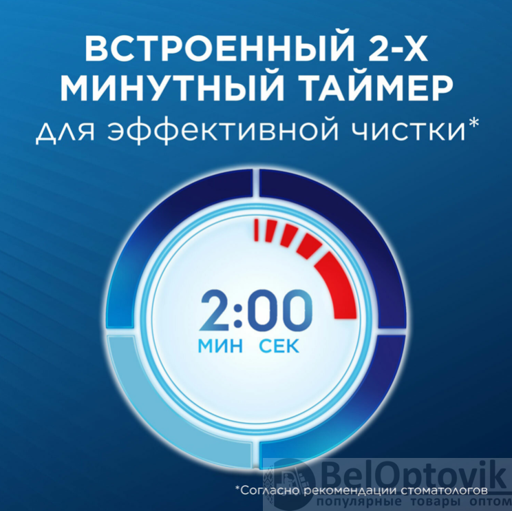• Таймер с функцией оповещения о необходимости смены зоны чистки зубов;