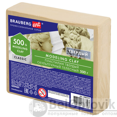 Скульптурный пластилин BRAUBERG ART CLASSIC телесного цвета предназначен для моделирования и создания скульптур, макетов, поделок. Идеально подходит не только для студентов, но и для всех, кто хочет научиться моделированию.