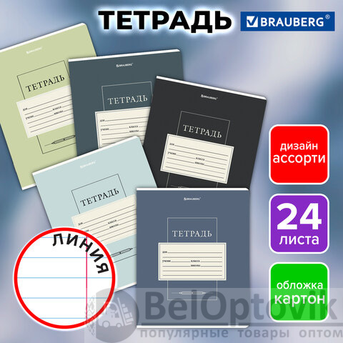 Тетрадь 24 л. BRAUBERG линия, обложка картон, CLASSIC, 107310