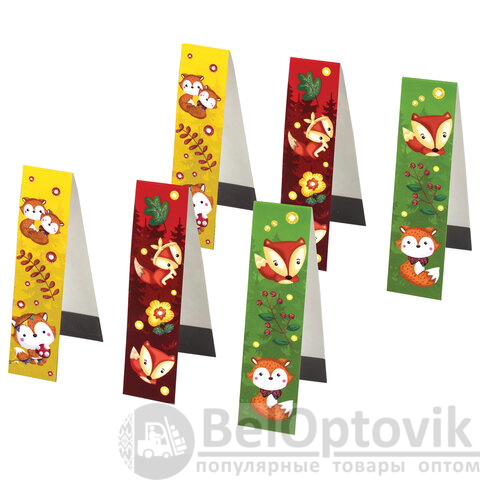 Закладки для книг с магнитом "ЛИСЯТА", набор 6 шт., блестки, 25x196 мм, ЮНЛАНДИЯ, 111639