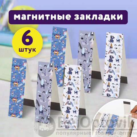 Закладки для книг с магнитом "ВЕРНЫЕ ДРУЗЬЯ", набор 6 шт., блестки, 25x196 мм, ЮНЛАНДИЯ, 111641