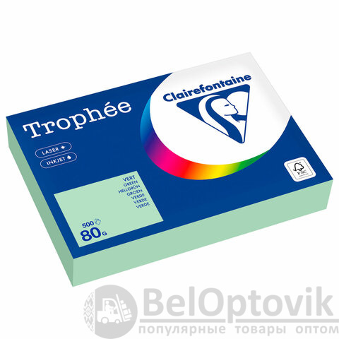 Бумага серии TROPHЕE от французского производителя CLAIREFONTAINE выпускается в широкой цветовой гамме. Упакована в пачку из 500 листов формата А4. В упаковке – бумага пастельного тона зеленого цвета. Листы бумаги плотностью 80 г/м2 подходят для офисной техники.