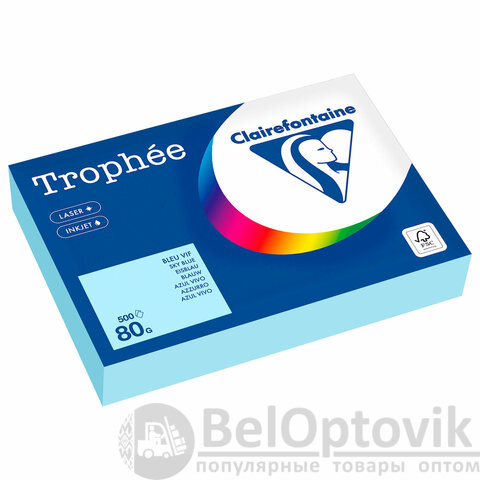 Бумага серии TROPHЕE от французского производителя CLAIREFONTAINE выпускается в широкой цветовой гамме. Упакована в пачку из 500 листов формата А4. В упаковке – бумага пастельного тона небесно-голубого цвета. Листы бумаги плотностью 80 г/м2 подходят для офисной техники.