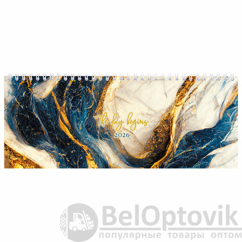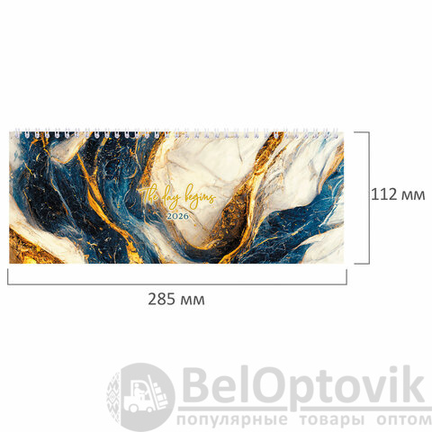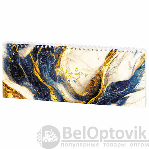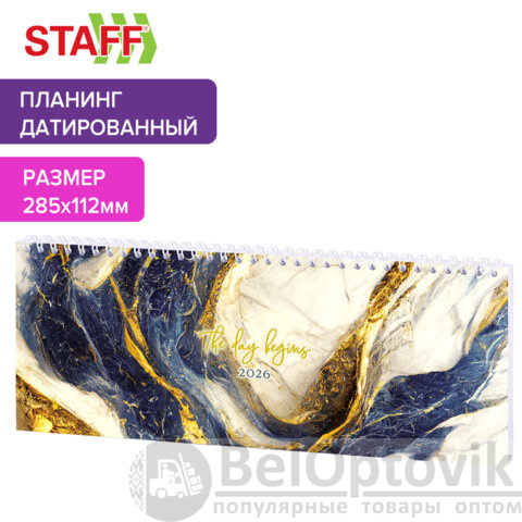 Планинг датированный 2026 285х112 мм, STAFF, гребень, картонная обложка, 64 л., "Мрамор", 117364