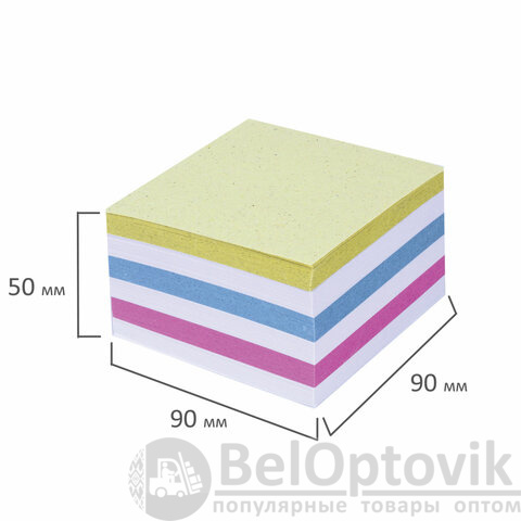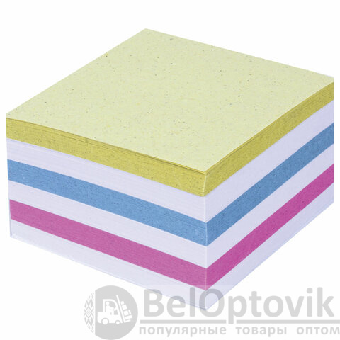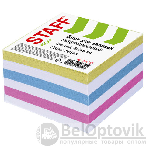 Блок для записей STAFF непроклеенный, куб 9х9х5 см, цветной, чередование с белым, 126365