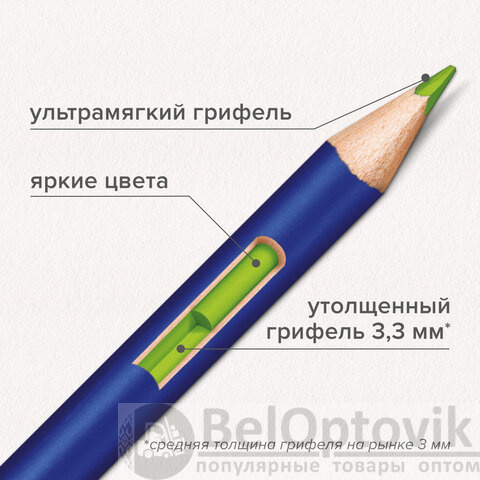 Акварельные карандаши похожи на обыкновенные цветные карандаши только внешне. Их стержень представляет собой прессованную акварель, он не крошится и очень напоминает стержень воскового карандаша, сочетая в себе свойства карандаша и акварели. Благодаря мягкому грифелю диаметром 3,3 мм рисовать акварельными карандашами можно на любой бумаге, они подходят для работы в различных техниках, их можно использовать как в сухом, так и в увлажненном виде. Высокосортная древесина и качество исполнения гарантируют легкую заточку.
