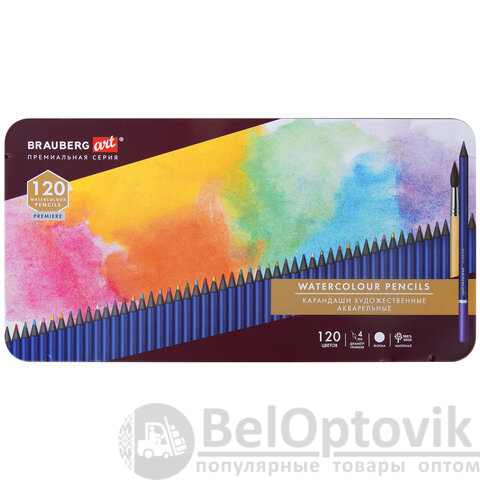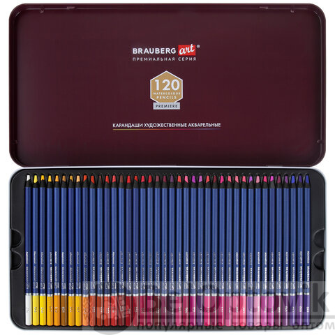 Карандаши художественные цветные акварельные, 120 цветов, 4 мм, металлический кейс, BRAUBERG ART PREMIERE, 181926