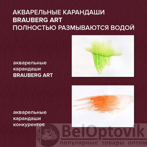 Акварельные карандаши BRAUBERG ART "PREMIERE" – это те же цветные карандаши, только штриховку возможно размыть водой, добиваясь эффекта акварельных красок.