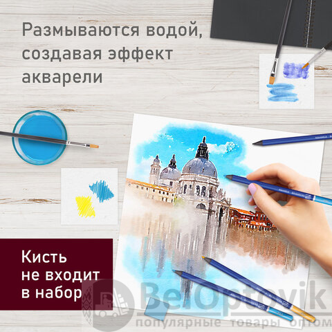 Акварельные карандаши - отличный выбор для тех, кто хочет рисовать в дороге, в кафе, на отдыхе. Они не занимают много места в сумке и часто более удобны для быстрых цветных зарисовок, нежели дорожный набор акварели. Приобретайте художественные карандаши премиального качества BRAUBERG ART PREMIERE и дарите своим творческим идеям новую глубину и выразительность!