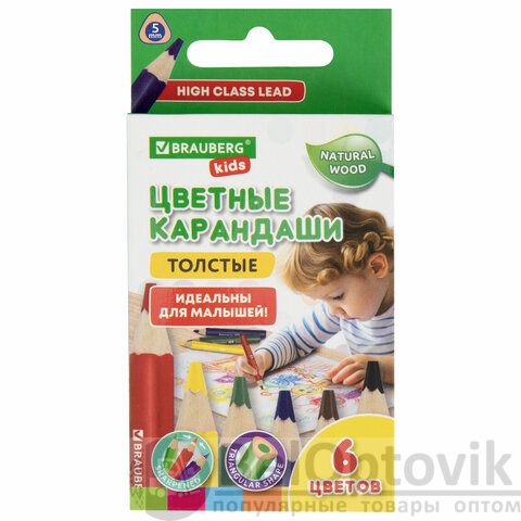 Утолщенные трехгранные деревянные цветные карандаши высокого качества BRAUBERG KIDS незаменимы для обучения рисованию и развития творческих способностей ребенка. Особое качество красящего пигмента обеспечивает насыщенные яркие цвета.