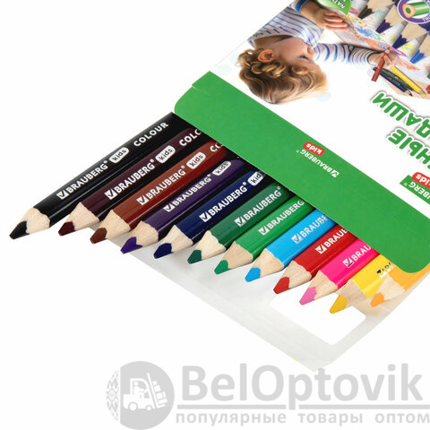 Утолщенные трехгранные деревянные цветные карандаши высокого качества BRAUBERG KIDS незаменимы для обучения рисованию и развития творческих способностей ребенка. Особое качество красящего пигмента обеспечивает насыщенные яркие цвета.