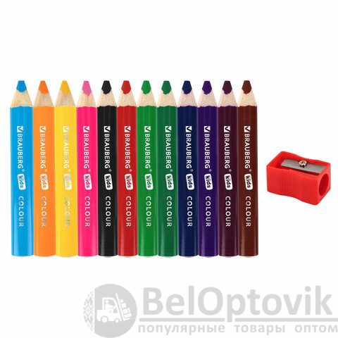Набор состоит из 12 цветов: черного, синего, голубого, салатового, зеленого, желтого, оранжевого, розового, красного, бордового, фиолетового, коричневого. В ПОДАРОК – ТОЧИЛКА! Ребёнок будет рисовать легко и с удовольствием благодаря эргономичной трёхгранной форме корпуса карандашей.