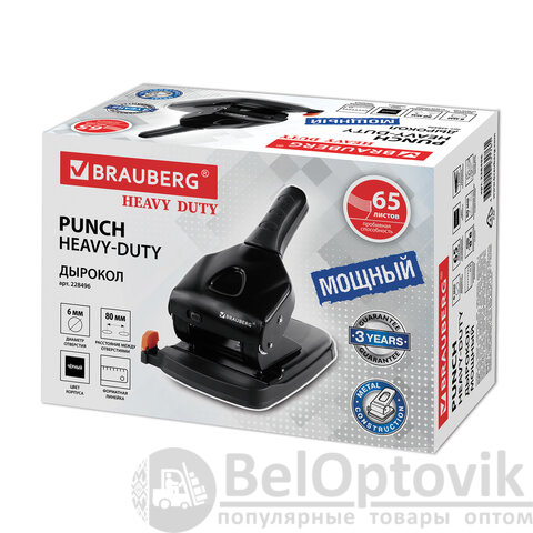 Качественный дырокол BRAUBERG "Heavy duty" обеспечивает точное и легкое пробивание большого объема бумажных листов.