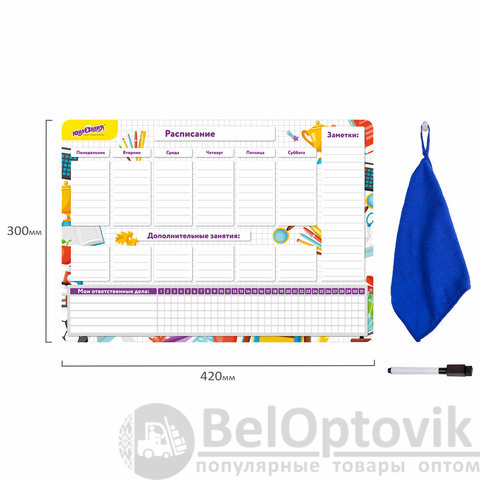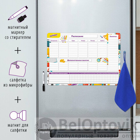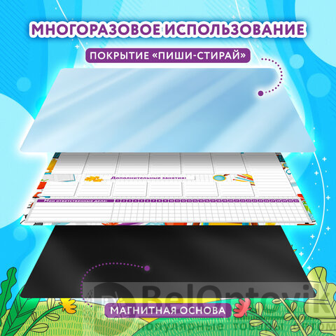 Магнитный планинг имеет многоразовую поверхность "пиши-стирай", выполненную из ПВХ.