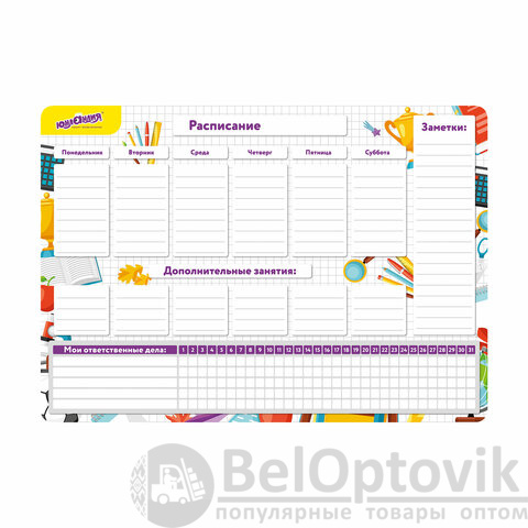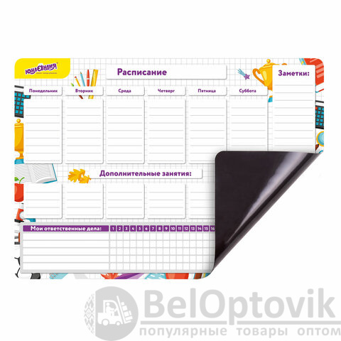 Магнитный планинг-трекер ЮНЛАНДИЯ - полезный подарок и незаменимый помощник в учебе и развитии детей. Планинг позволит школьнику эффективно планировать свое время на предстоящую неделю, а его родителям ненавязчиво контролировать этот процесс.