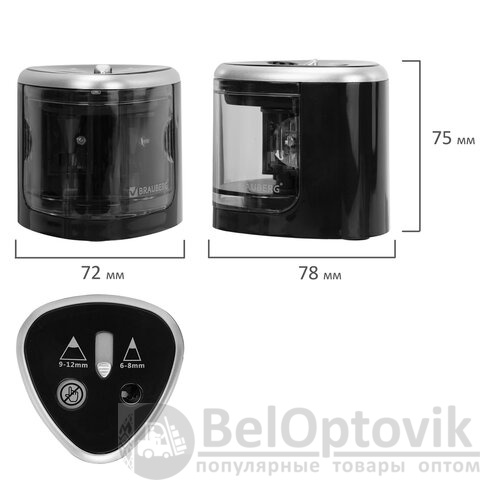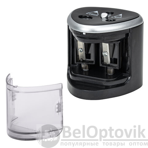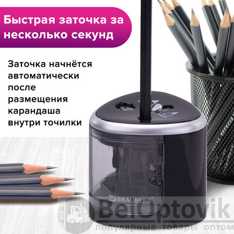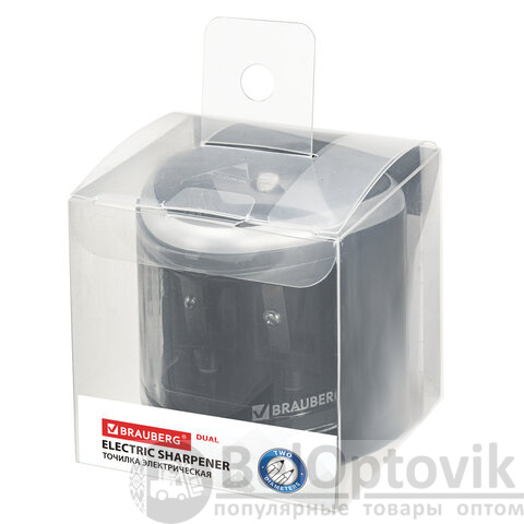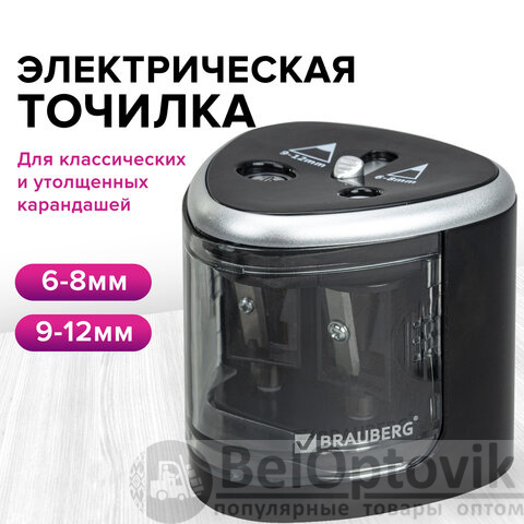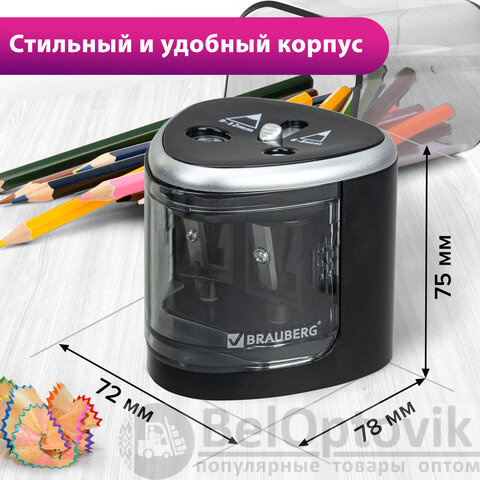 Точилка электрическая BRAUBERG DUAL (для 2 диаметров карандашей!), 4 батарейки АА, черная, 270581