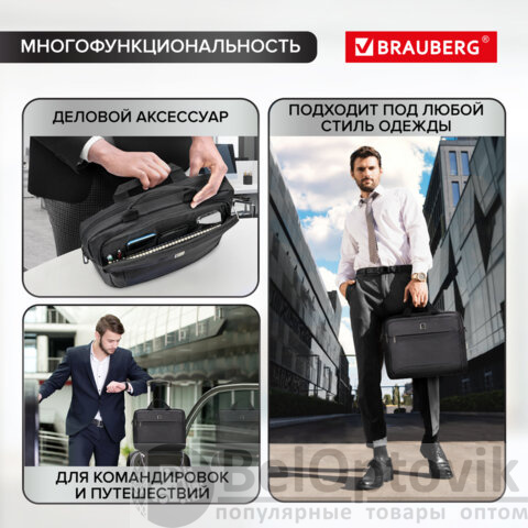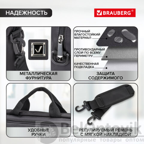 Многофункциональная деловая сумка BRAUBERG "Protect" с отделением для ноутбука способствует безопасной переноске электронных устройств. Сумка может использоваться как ежедневно, так и для поездок в командировки или путешествия.
