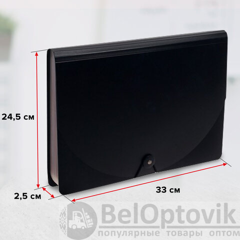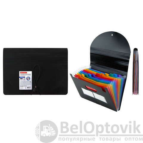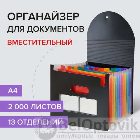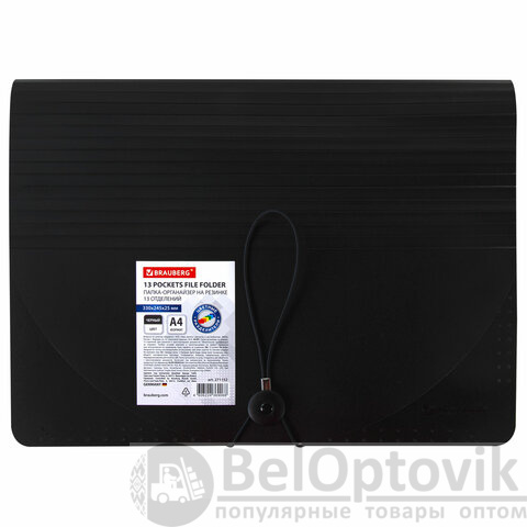 Папка-органайзер для бумаг и документов на резинке, 13 отделений, BRAUBERG DOCS, А4, черная, 271152