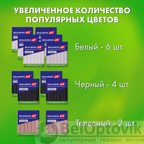 Глина полимерная запекаемая BRAUBERG ART CLASSIC - профессиональная серия. Предназначена для лепки и моделирования, создания игрушек, украшений, предметов интерьера, сувениров.