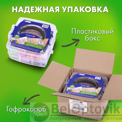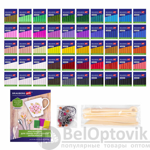 Глина полимерная запекаемая, НАБОР 50 штук (42 цвета) по 20 г, с аксессуарами в кейсе, BRAUBERG ART, 271166