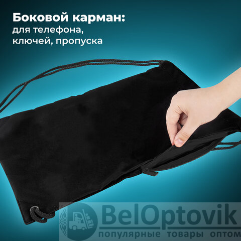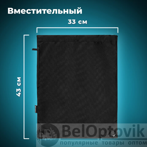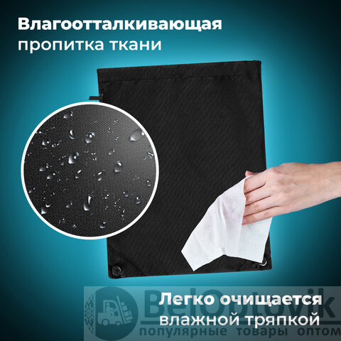 Мешок для обуви BRAUBERG плотный, карман на молнии, подкладка, 43х33 см, Total Black, 272427