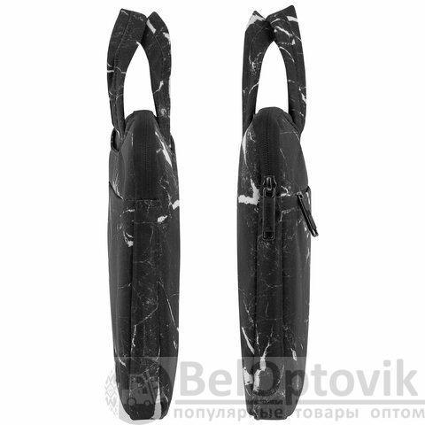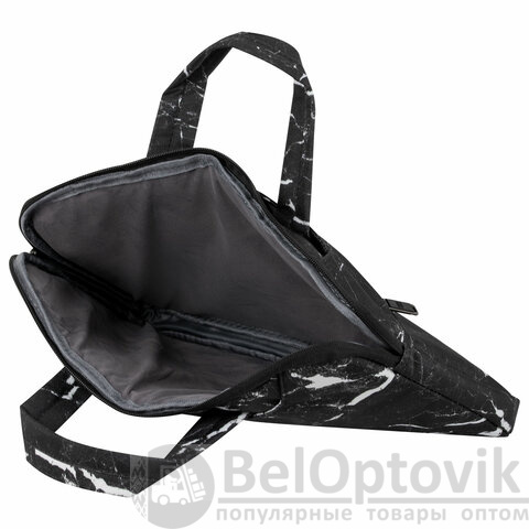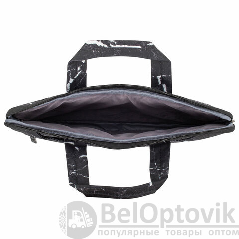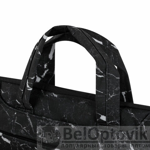 Трендовый черно-белый принт "Мрамор" прекрасно сочетается с разными стилями в одежде. Деловая сумка изготовлена из современного, износостойкого и качественного материала – полиэстера, обладающего водоотталкивающими свойствами. Полиэстер обладает отличной устойчивостью цвета к солнечным лучам и легкостью в уходе. Загрязнения легко удаляются с помощью мыла и мягкой влажной губки. Подкладка выполнена из мягкого, приятного на ощупь велюрового материала.
