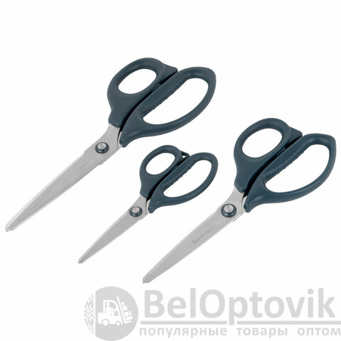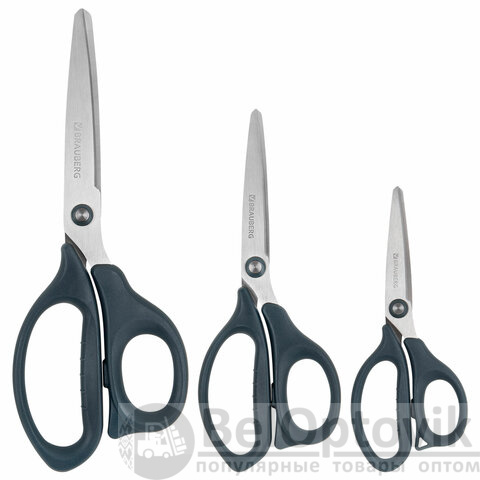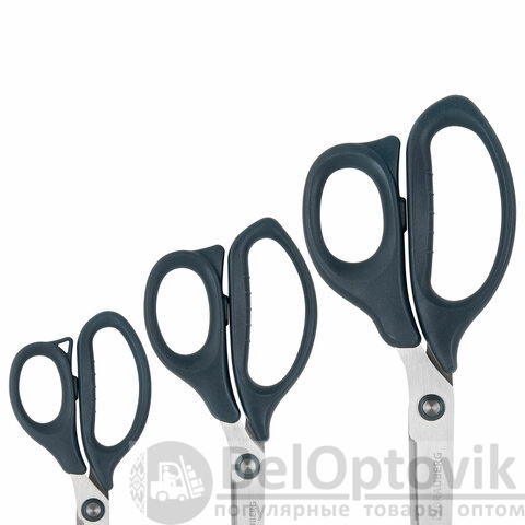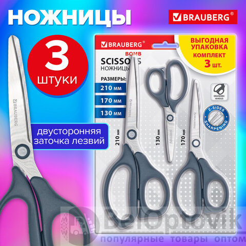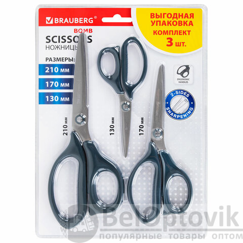 Ножницы BRAUBERG "BOMB" 3 шт. (130, 170, 210 мм), темно-серые ручки, ВЫГОДНАЯ УПАКОВКА, 272980