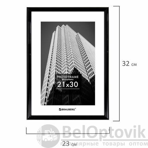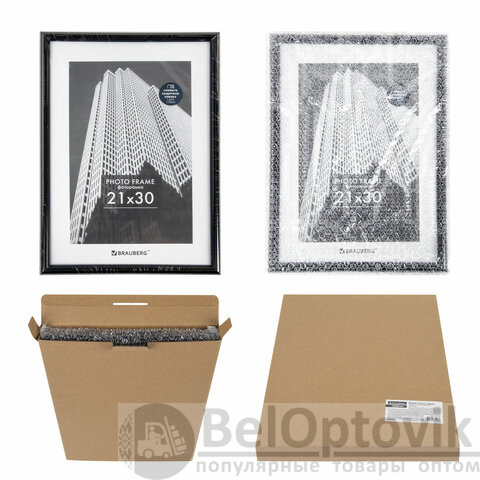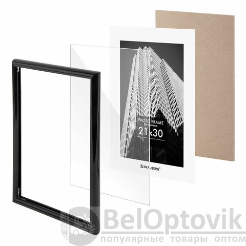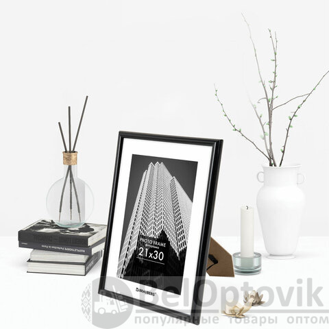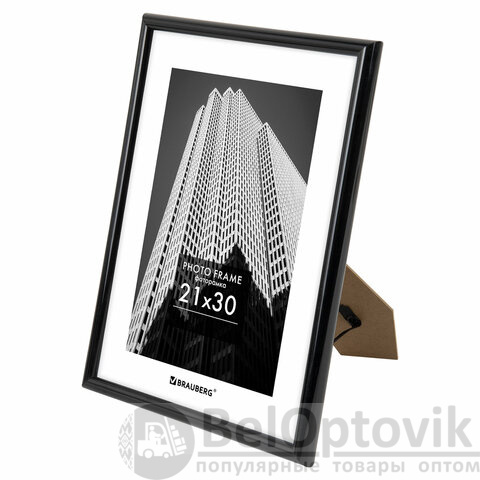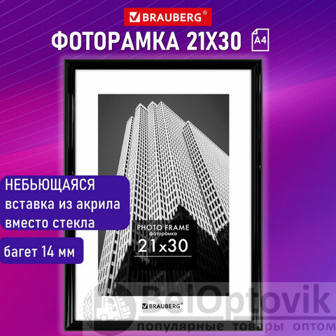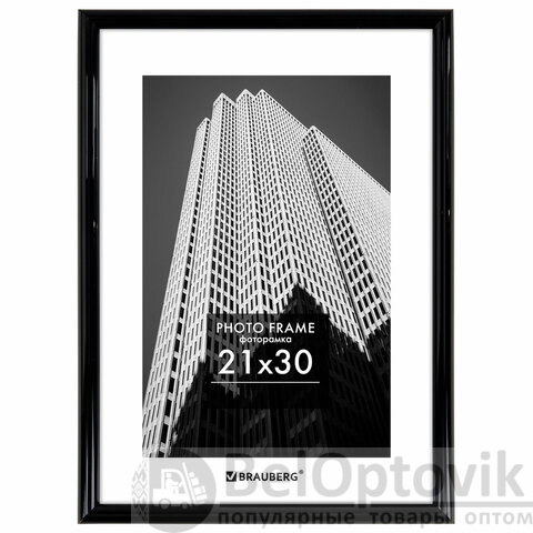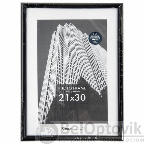 Рамка 21х30 см небьющаяся, багет 14 мм, пластик, BRAUBERG "Original", черная, 391229