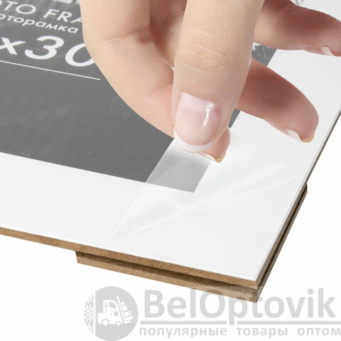 Ширина багета - 14 мм, высота - 18 мм. Вставка из акрила вместо обычного стекла делает рамку менее хрупкой. Перед применением снимите пленку с обеих сторон экрана.