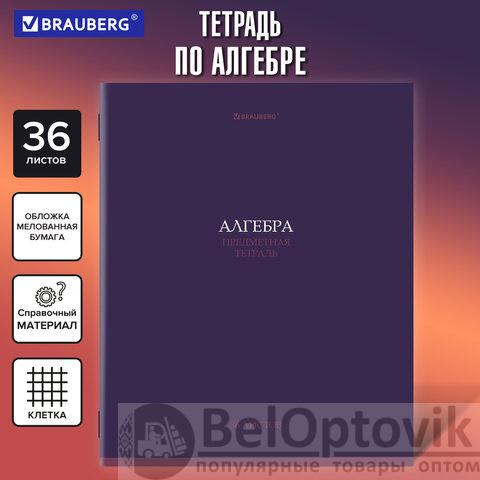 Тетрадь предметная "КОЛОР" 36 л., обложка мелованная бумага, АЛГЕБРА, клетка, BRAUBERG, 405069