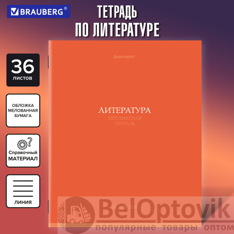 Тетрадь предметная "КОЛОР" 36 л., обложка мелованная бумага, ЛИТЕРАТУРА, линия, BRAUBERG, 405077