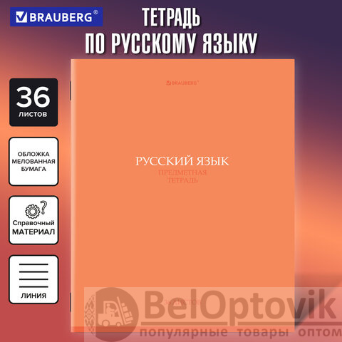 Тетрадь предметная "КОЛОР" 36 л., обложка мелованная бумага, РУССКИЙ ЯЗЫК, линия, BRAUBERG, 405078