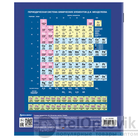 Тетрадь предметная "КОЛОР" 36 л., обложка мелованная бумага, ХИМИЯ, клетка, BRAUBERG, 405080