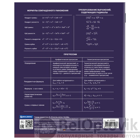 Предметные тетради BRAUBERG из серии "КОЛОР" со справочным материалом предназначены для учащихся средних и старших классов.