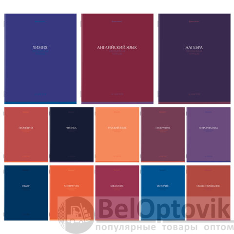В комплекте 13 тетрадей: Алгебра, Английский язык, Биология, География, Геометрия, Обществознание, История, Информатика, Литература (в линию), Русский язык (в линию), Физика, Химия, ОБиЗР.
